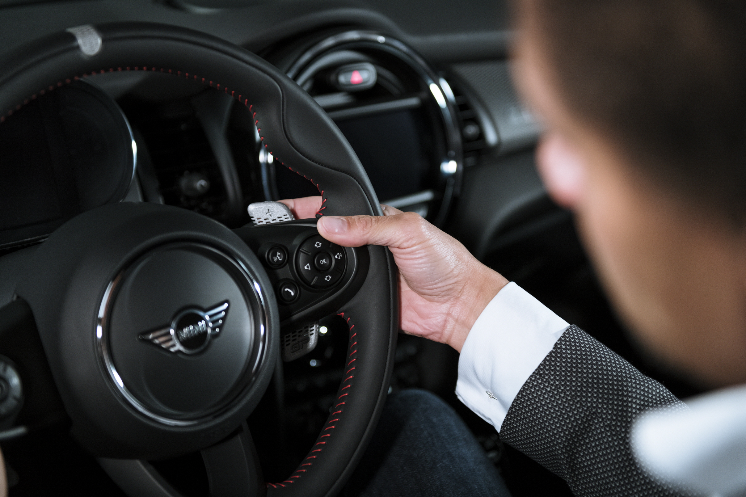 미니 JCW GP의 인테리어는 순수한 스포티함을 나타내는 강렬한 컬러의 조합이 특징이다. 다크컬러와 소재를 사용한 컨셉트는 불필요한 디테일을 의도적으로 제거하고 스포티함을 온전히 표현한다. 운전석 주변은 스티어링 컬럼에 연결된 디지털 클러스터를 통해 모든 정보를 직관적으로 시야에 담을 수 있다.