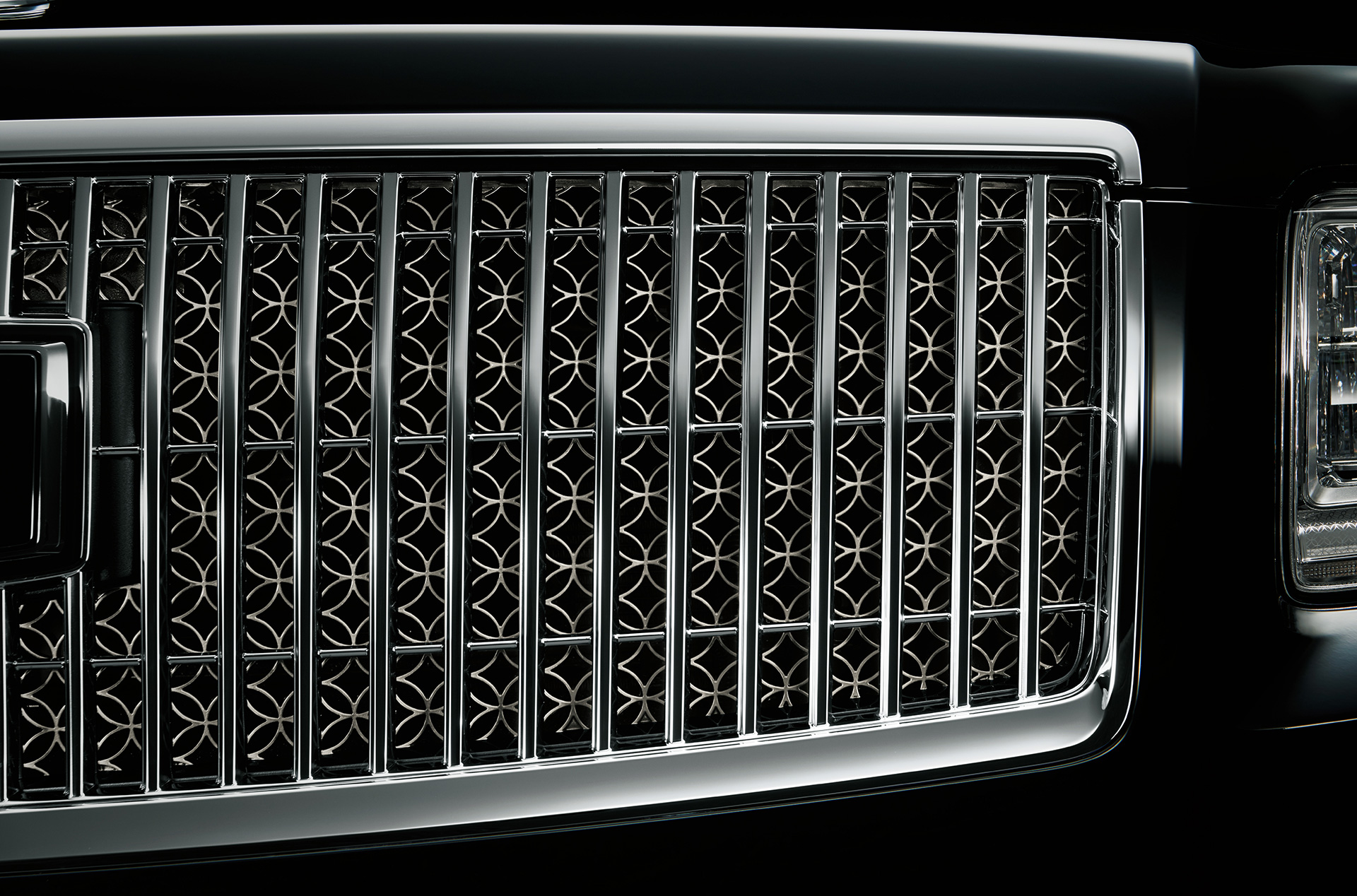 원목 오너먼트로 앞좌석과 뒷좌석의 공간을 구분하면서 "천장 안쪽의 중앙부가 위로 한단계 높이 오목하게 올라가게 하는 건축양식"으로 디자인하고, 천장 안쪽에는, "사릉형(비스듬히 늘어진 卍자가 겹쳐져 생기는 패턴으로, 이 패턴은 가문의 번영과 장수를 기원하는 문양으로도 알려져있다.) 문양"의 직물을 더해, 뒷좌석 공간의 품격을 높였다.