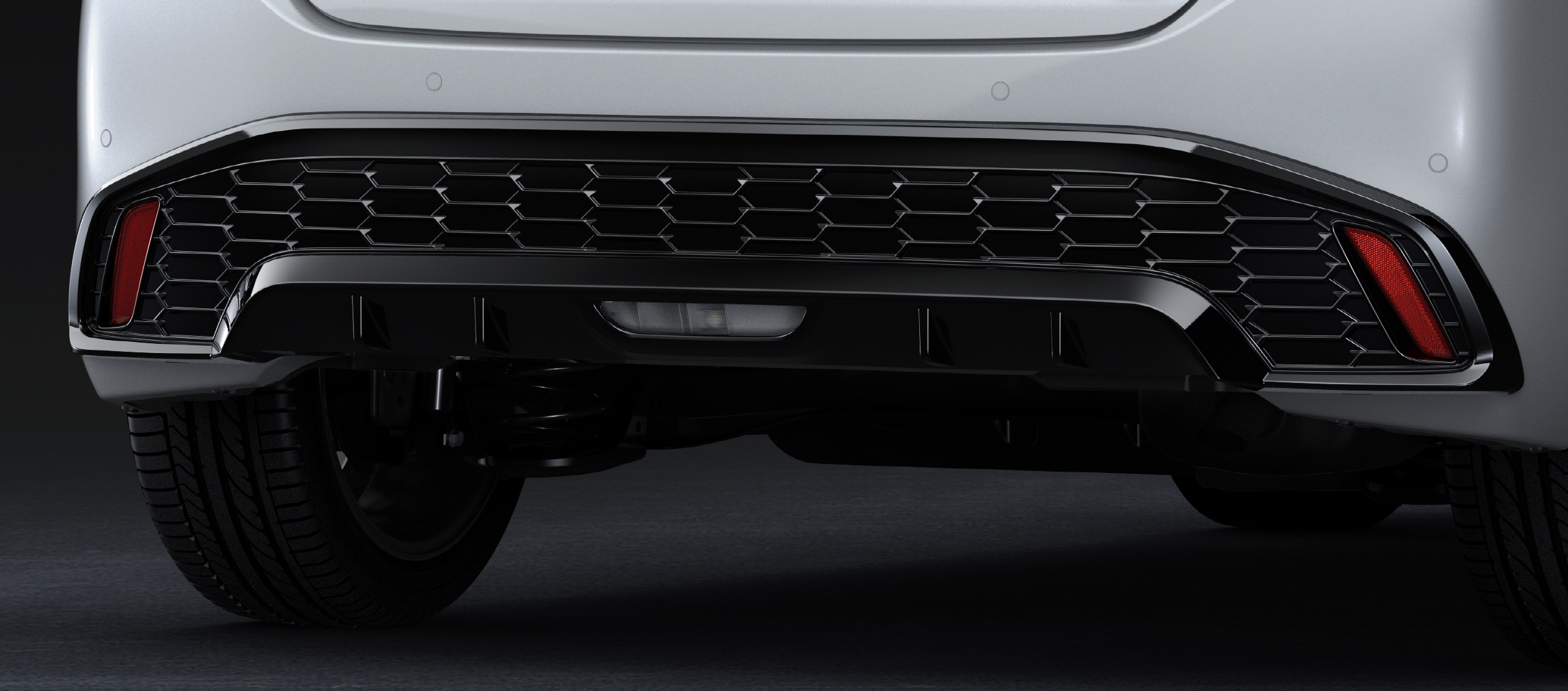 리어 범퍼 하부 디자인은 블랙 컬러로 마감하고 "G" 매시 텍스처로 구성해 와이드 앤 로우 스타일로 스포티한 뒷모습을 연출했다.
