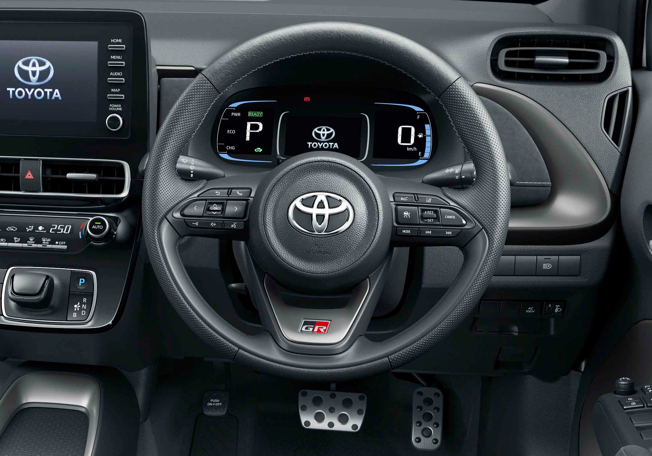 그리고 3 스포크 가죽 스티어링 휠에도 "GR"로고를 새겼으며, 알루미늄 페달, 전용 콘솔을 추가했다. 최대한 광택이 나지 않도록 다크 메탈릭 컬러를 사용했고, 도어 핸들, 에어컨 송풍구 노브에는 실버 컬러로 마감했다.