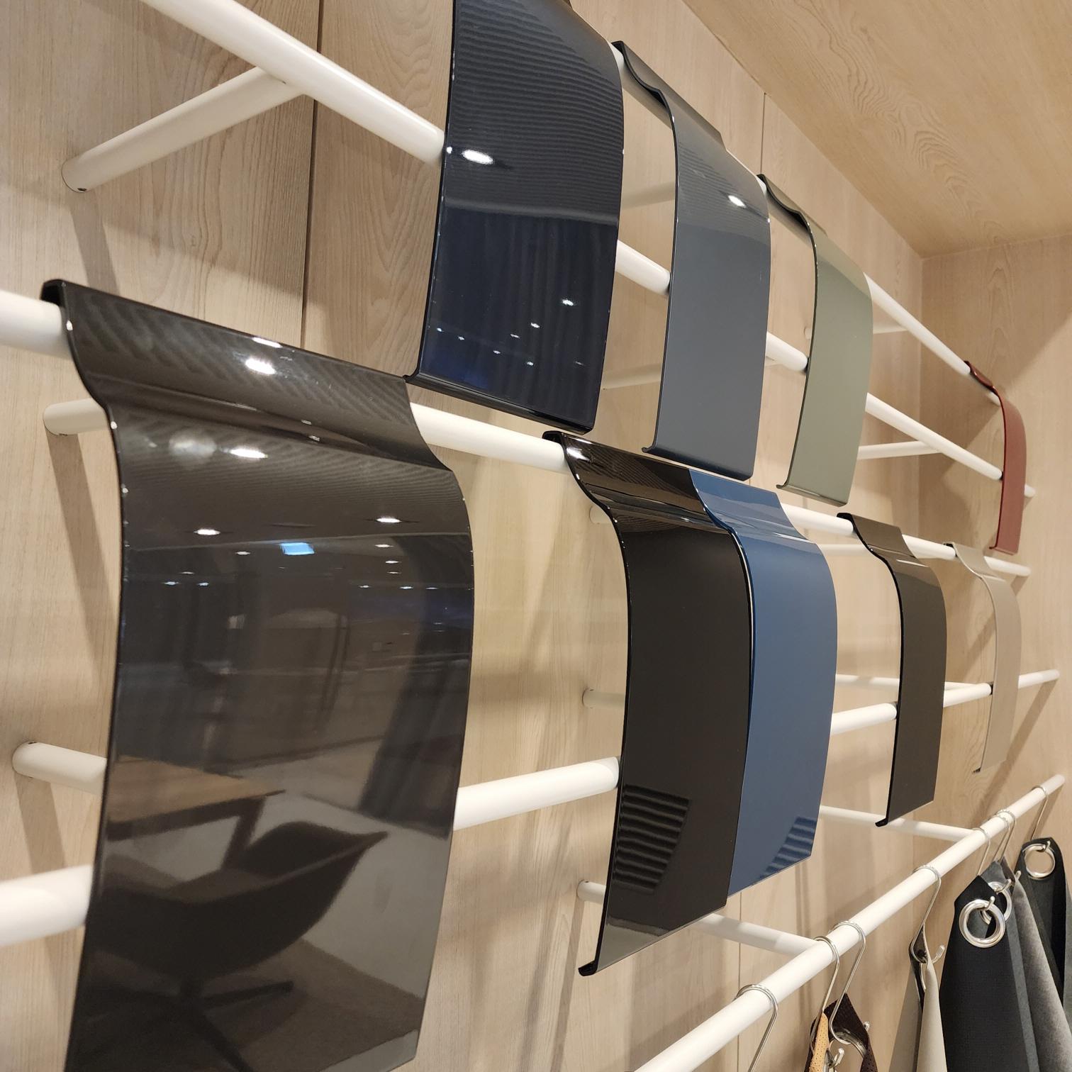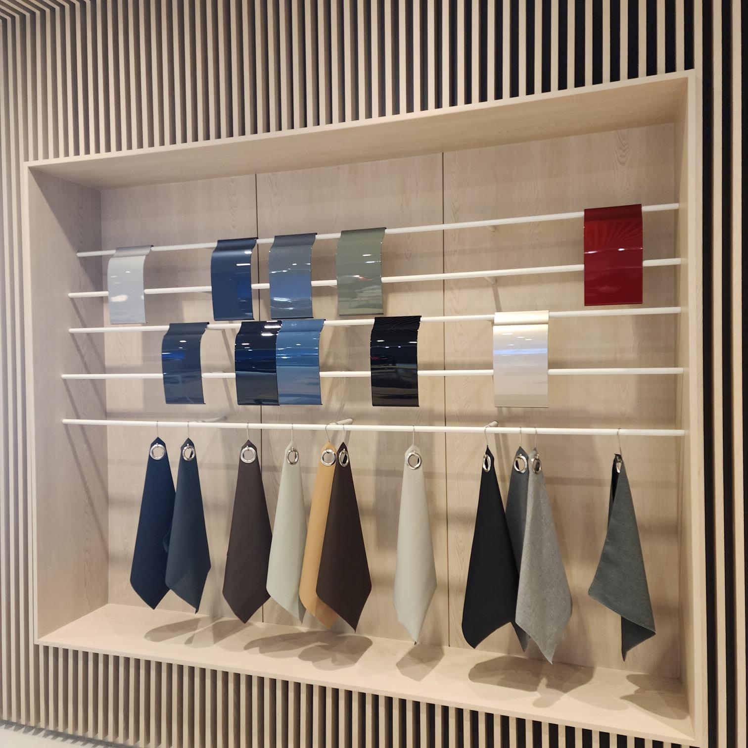 먼저, 딱, 보면 아시겠죠? 볼보의 대표 컬러들 그리고 인테리어 가죽에 사용하는 컬러들입니다. 모델과 트림에 따라 선택할 수 있는 가죽이 하나씩 진열되어 있습니다. 물론, 만져보고 촉감을 느껴볼 수도 있으며, 전시되어 있지 않은 차량의 컬러도 여기서 확인할 수 있습니다.