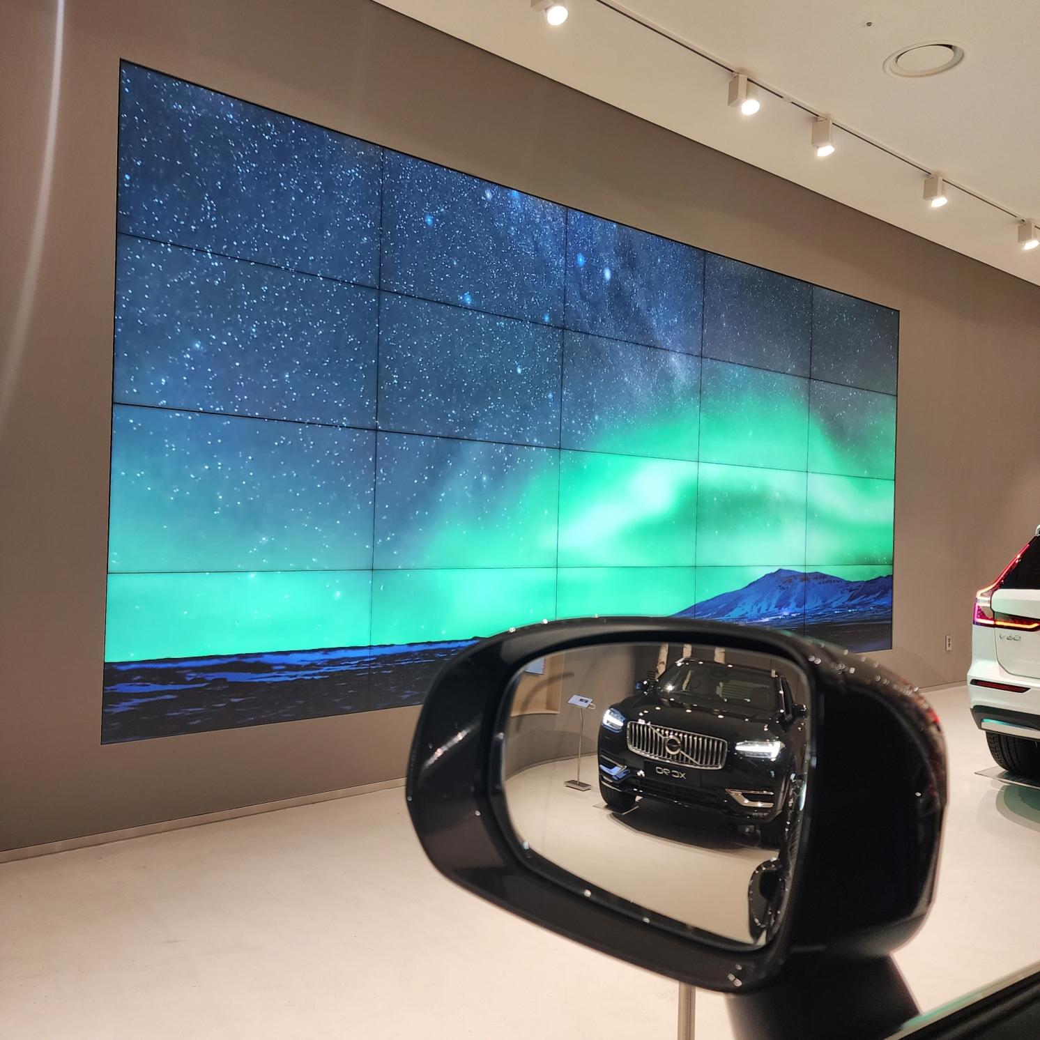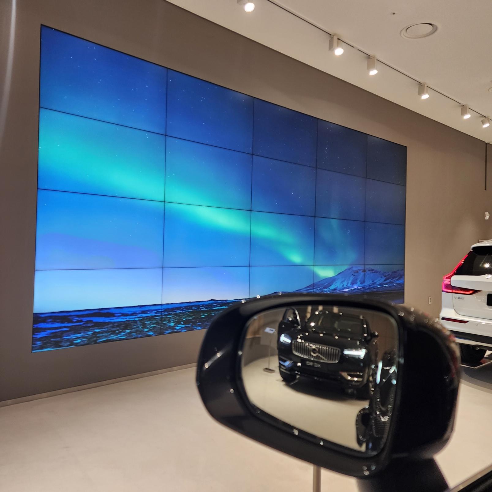 먼저, XC60 건너편에 대형 스크린 보이시죠? 바로 XC60이 뷰 맛집입니다. 저 오로라 영상이 실제 보고 있으면, 넋을 놓고 볼 정도로 황홀하게 아름답습니다.