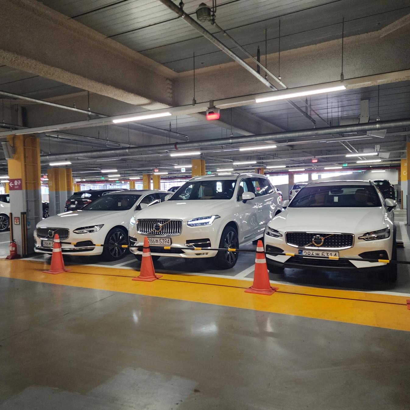 사람이 보통 주차장에 계단이 나오면 올라가기 쉽습니다. 볼보 시승차들은 아래 2F주차장에 있습니다. 바로 내려가 볼까요?