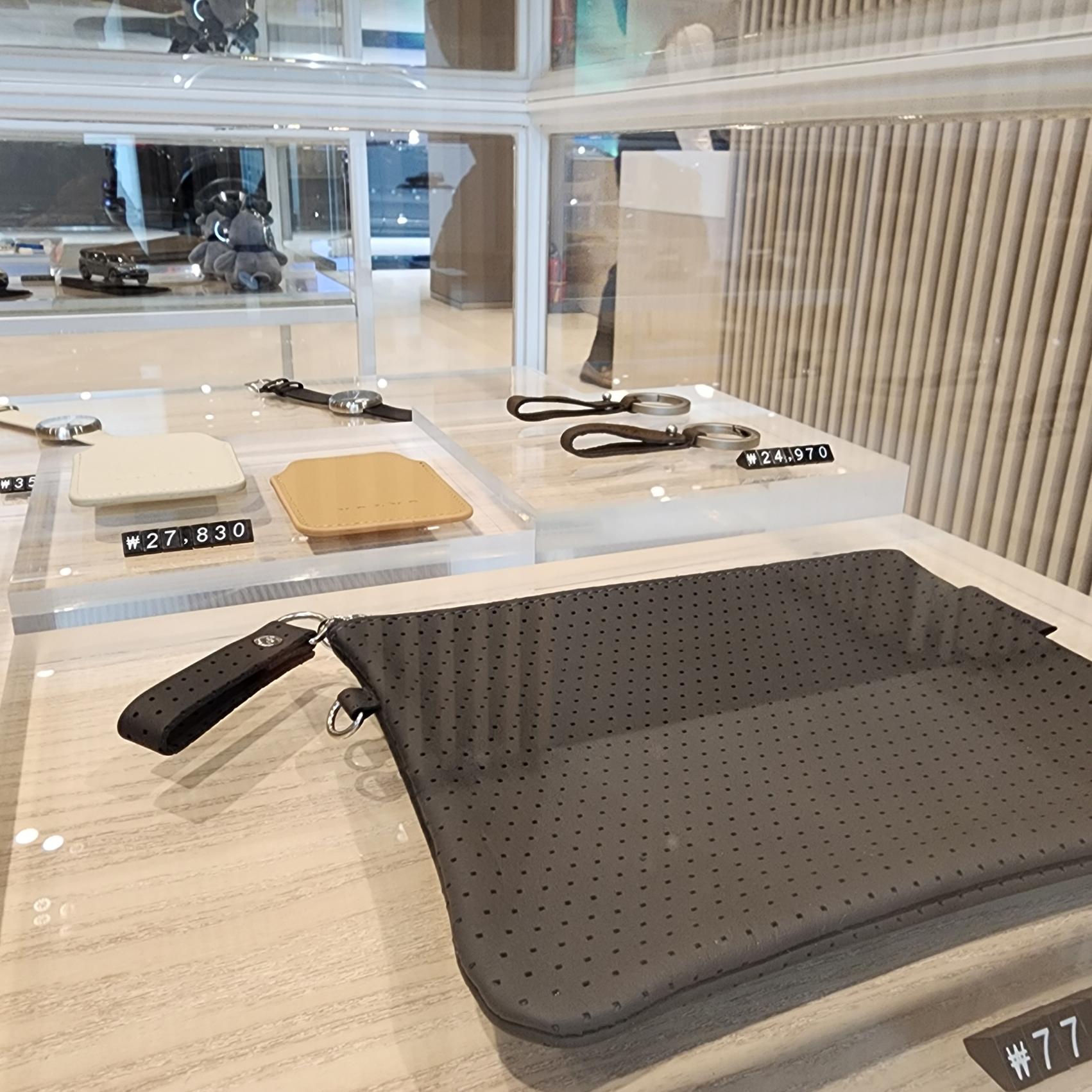키링이나 카드 지갑도 차분하고 예쁩니다. 특히 카드 지갑은 볼보 시트에서 보던 그 가죽으로 만들었나 싶을 정도로 촉감이 왠지 느껴집니다.