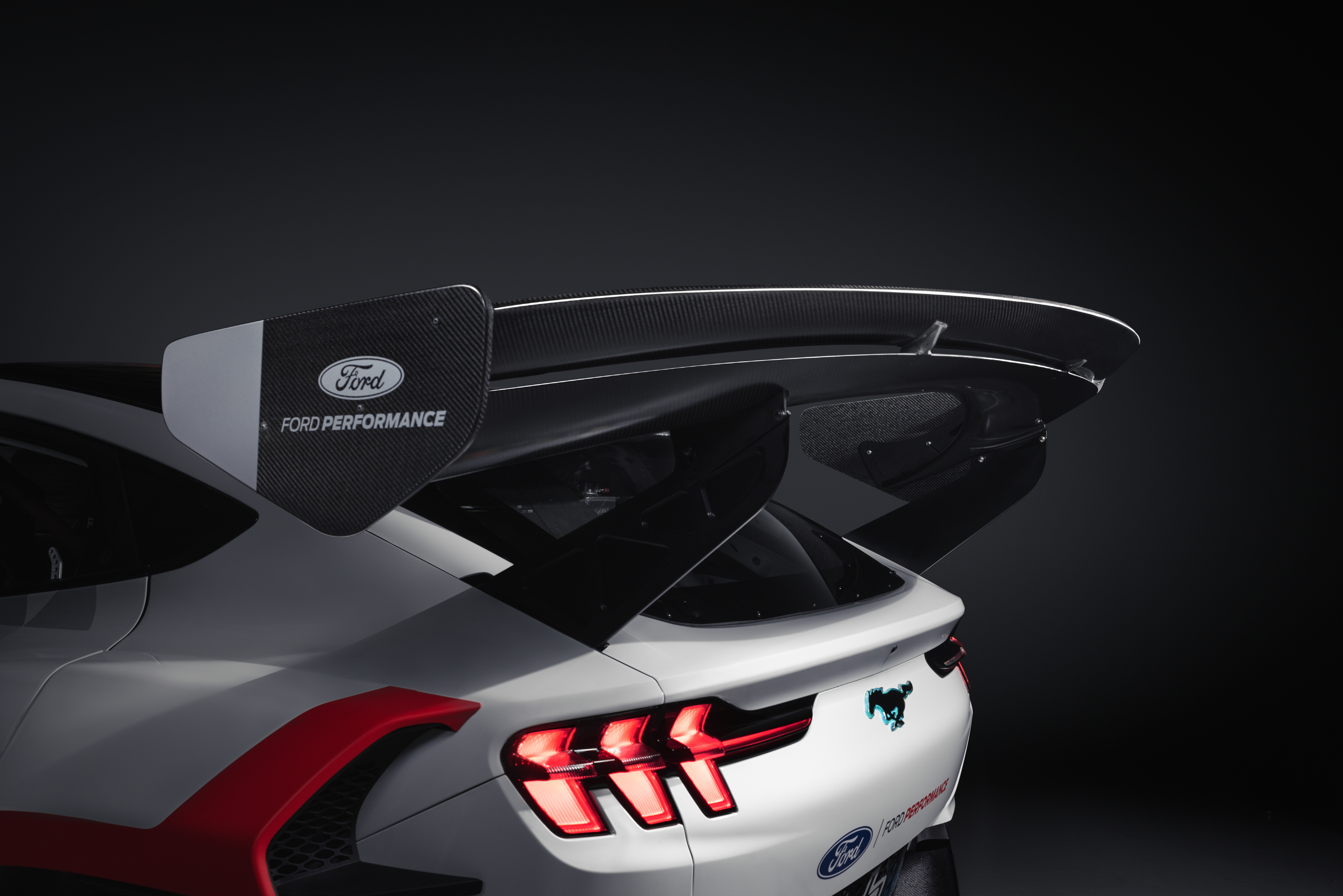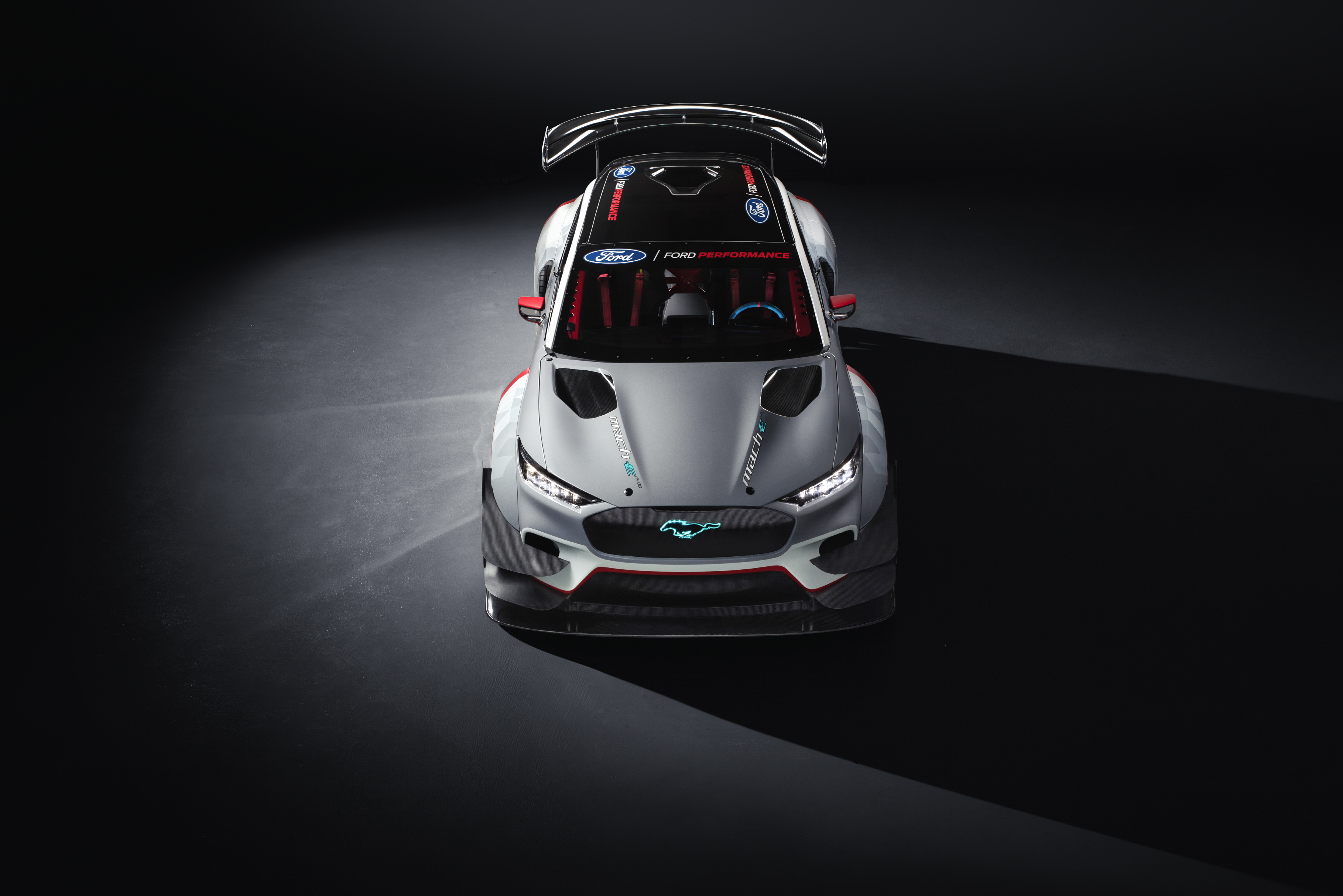 RTR과 협업으로 개발한 머스탱 마하-E GT 화이트 보디 프로토타입은 최고출력 1,400마력을 내는 것이 목표였고 섀시와 파워트레인은 다른 일반 자동차와 달리 다양한 셋업이 가능하도록 설정했다.