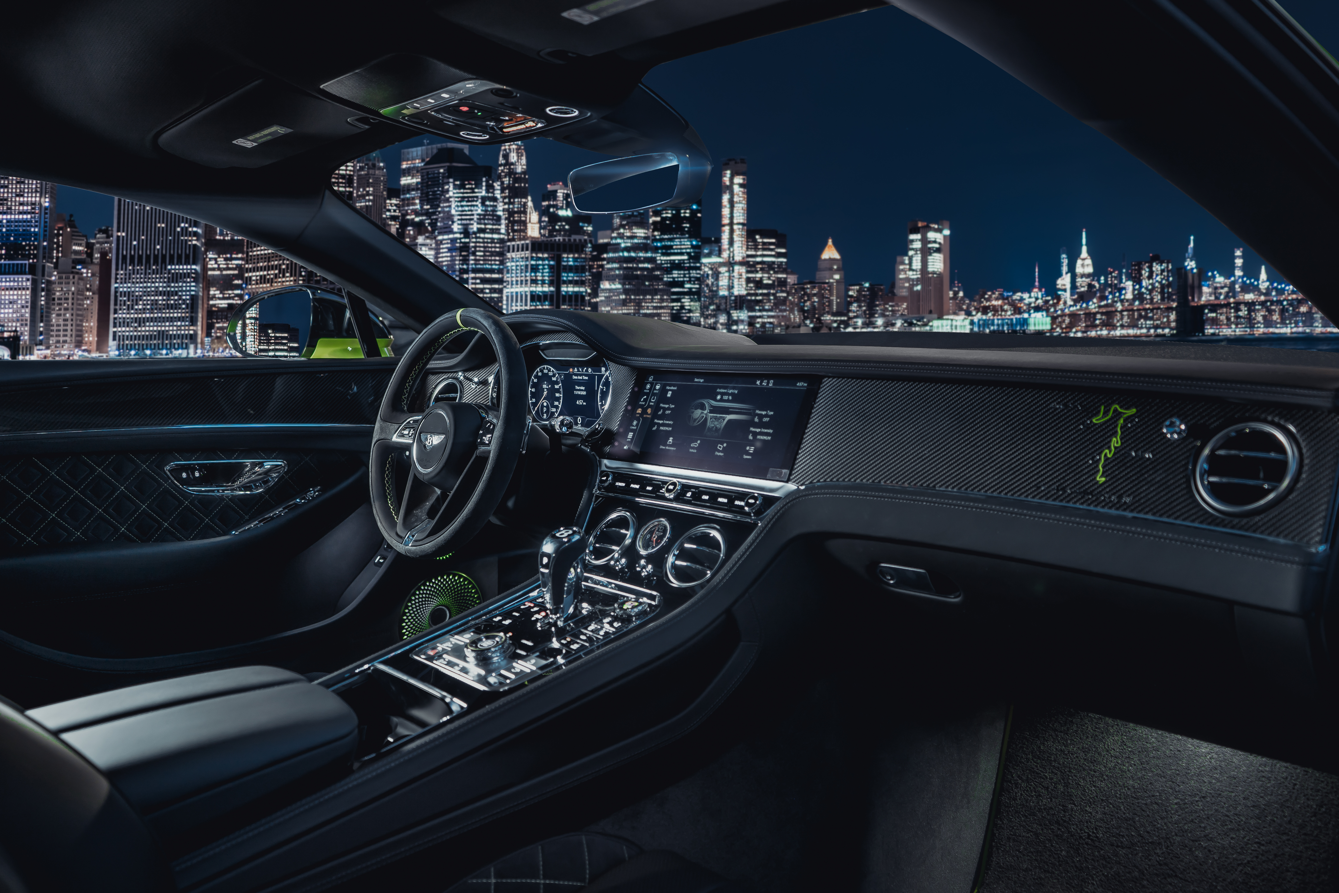 파이크스 피크 라듐 자수는 헤드레스트 스트링, 오버매트에 새겨져있고, 파이크스피크 트레드 플레이트와 B&O 스피커 커버까지 이어진다. 인테리어의 핵심에는 컨티넨탈 GT의 혁신적인 벤틀리 로테이팅 디스플레이가 자리를 잡고 있다.