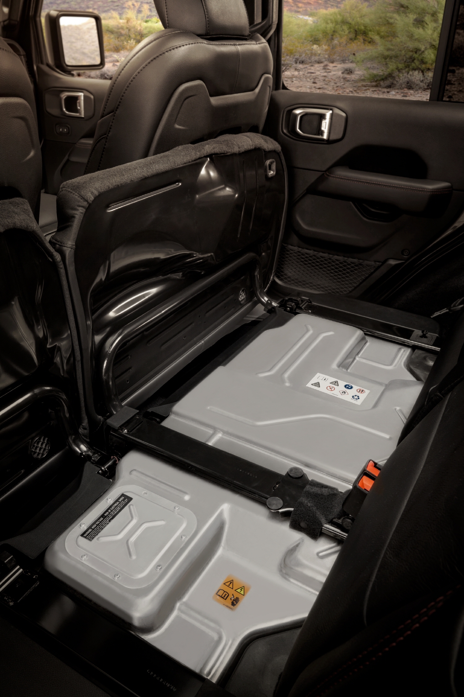 지프 랭글러 4xe에 장착한 400V, 17kWh, 96셀 리튬이온 배터리팩은 니켈망간 코발트 흑연 화학작용을 사용한다. 배터리 팩과 컨트롤은 2열 시트 아래 장착해 안전성을 확보했다.
