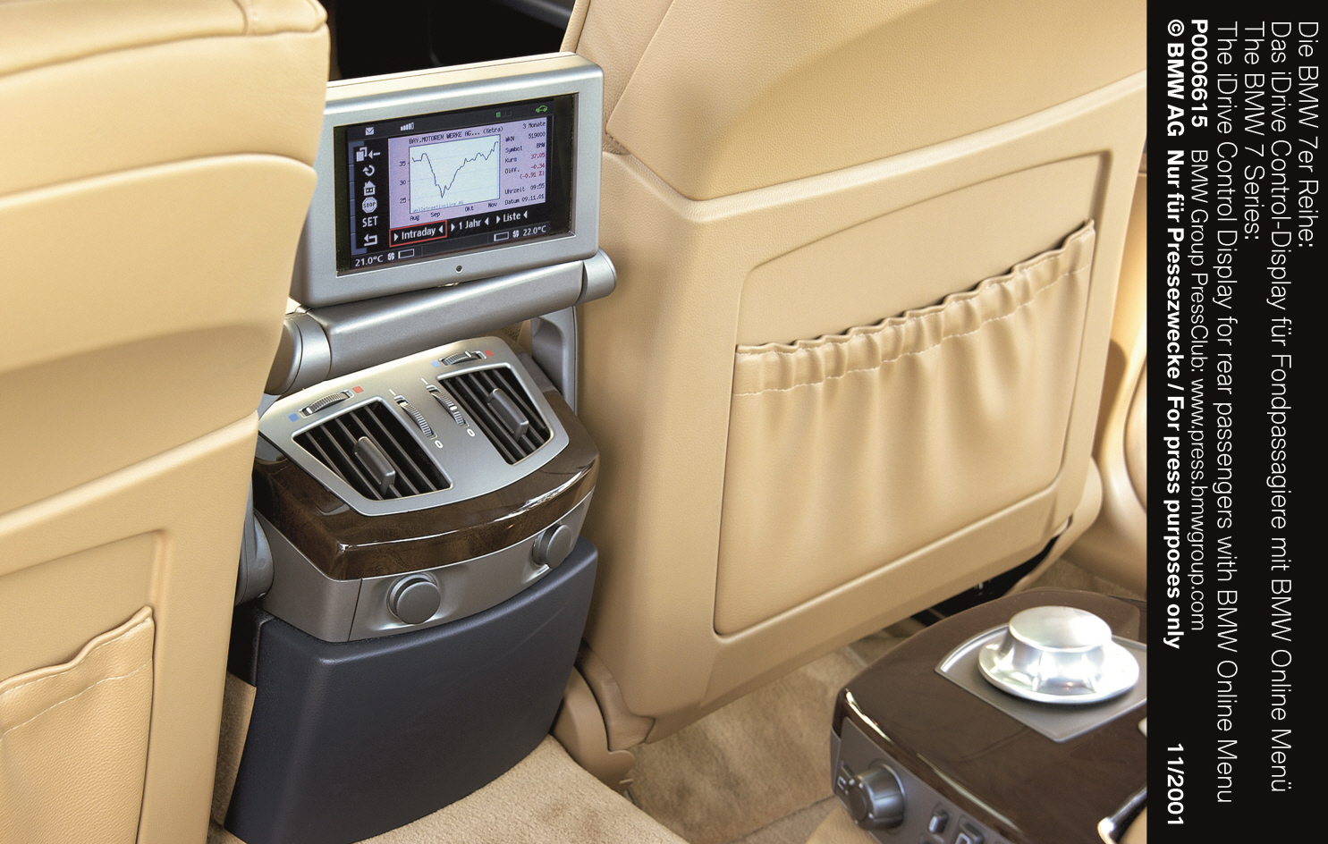 대신 컨트롤 디스플레이의 컬러 스크린과 센터콘솔의 iDrive 컨트롤러 다이얼을 배치했다. 이 다기능 시스템은 운전자가 단일 작동 도구로 다양한 차량 설정, 엔터테인먼트, 내비게이션, 전화기능 등을 제어할 수 있게 했다. 그리고 BMW 7 시리즈는 음성인식 기술을 탑재한 최초의 자동차였다.