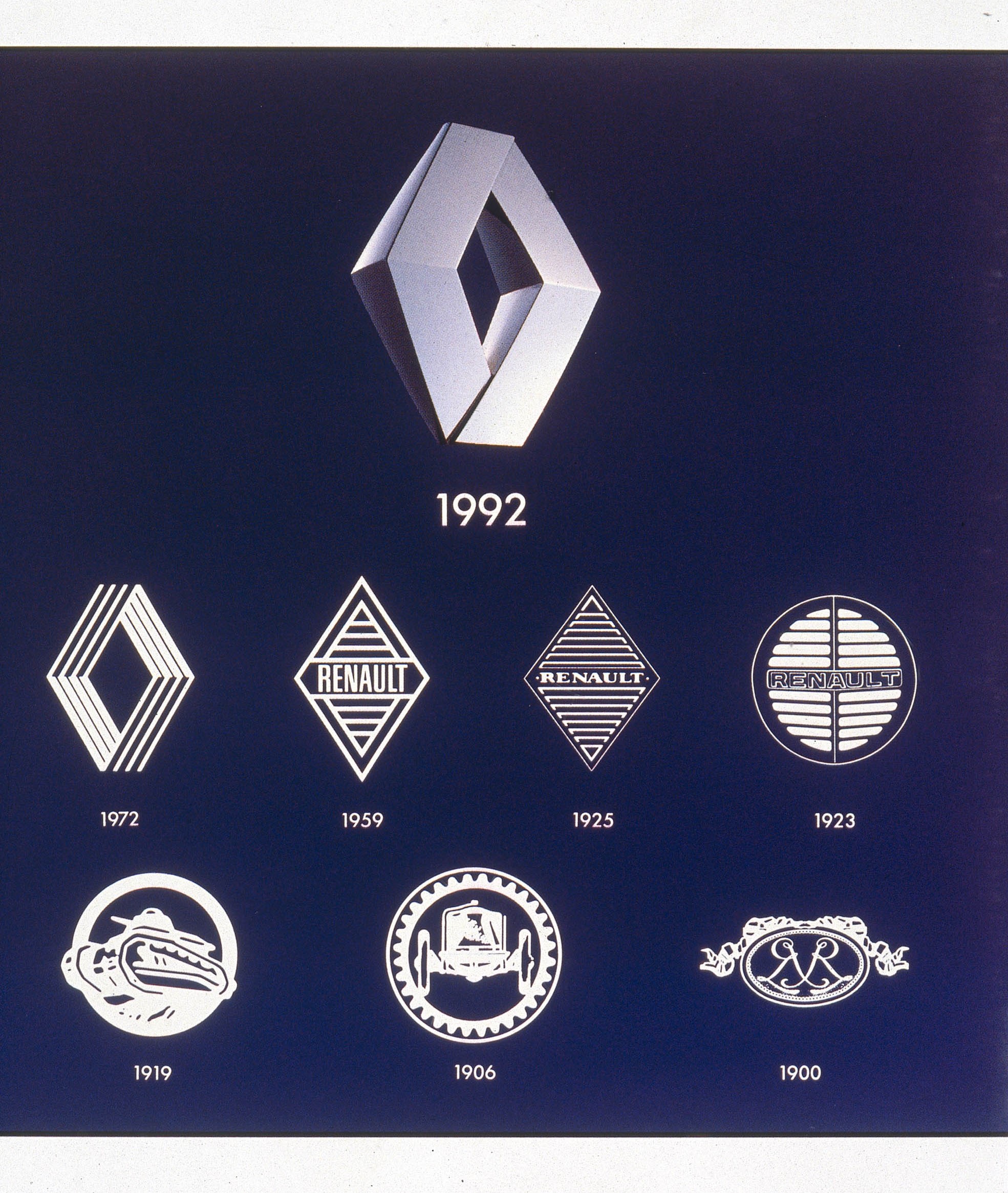 르노는 이미 로고를 아이콘화 하기 위해 라인을 사용해왔다. 1946년, 1959년과 1972년의 로고가 그렇다. 질 비달은, "라인은 하나의 이야기를 들려주는 질문을 담고 있다. 로고는 상호 보완성과 지속적인 움직임에 대한 인상을 심어주는 질문을 하고 있다."고 말한다.