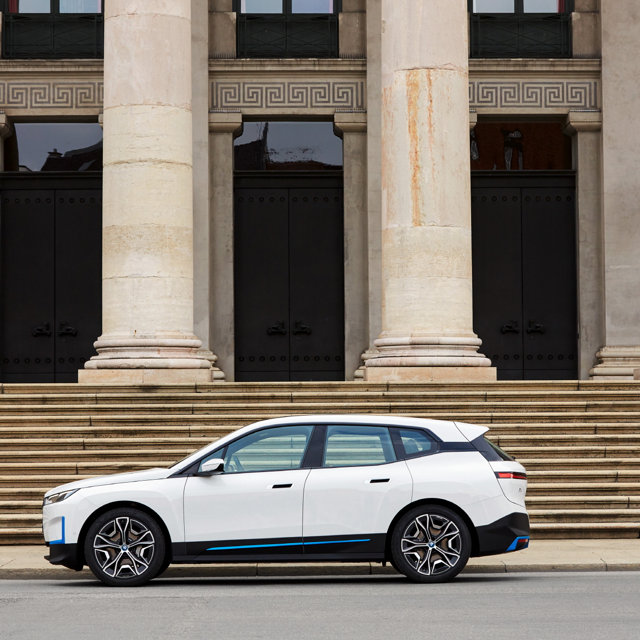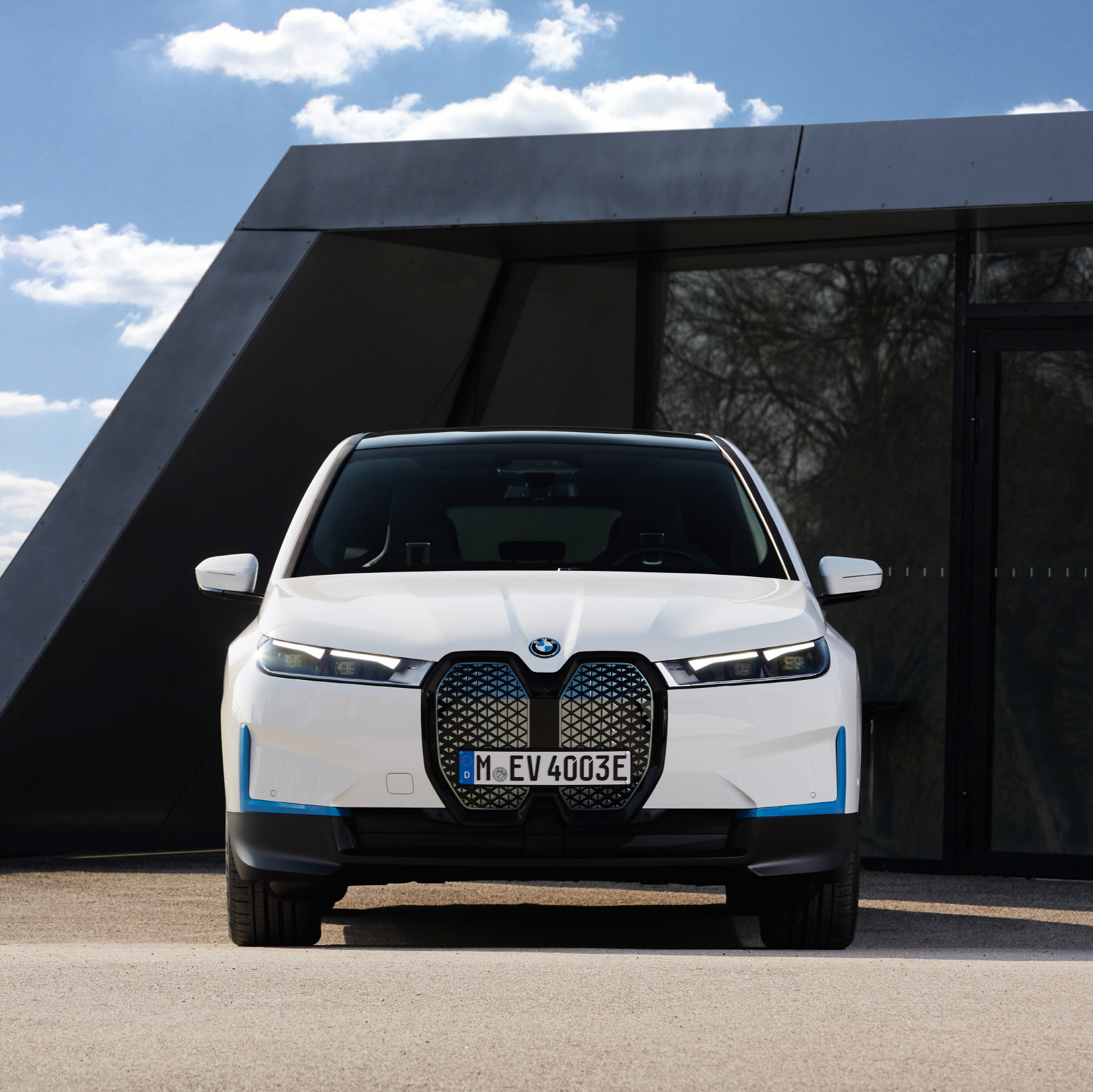 BMW iX의 미래지향적 특성은 디자인에서도 드러난다. 선명하게 구조화되고 최소화 한 디자인 언어, 근육질의 SAV 비율을 만드는 당당한 스타일링, 정교하게 배치된 디테일이 럭셔리한 이미지를 만들어 낸다. 눈에 띄는 액센트는 BMW 키드니 그릴이며, 이 그릴의 표면은 혁신적인 제조기법을 사용했고 카메라와 라이다 센서가 통합되어 있다.