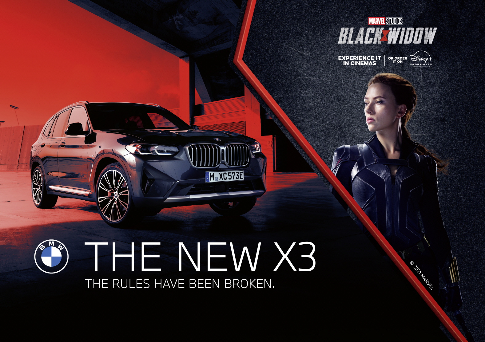 BMW와 마블 스튜디오는 7월 9일 개봉 예정인 "블랙 위도우(Black Widow)" 영화에서 처음 공동 작업을 진행했다. 마블 시네마틱 유니버스의 액션 스파이 스릴러 영화에 BMW X3는 완벽하게 어울리는 모델이었다. 또한 사상 최초로 BMW 2시리즈 그란쿠페도 출연했다.