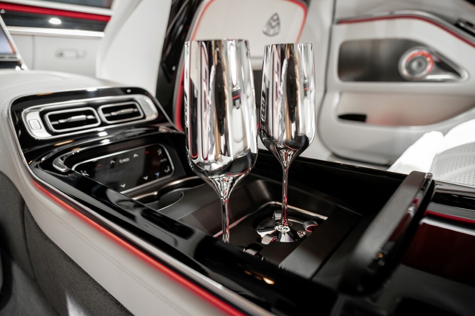 옵션으로 제공되는 리어 암레스트의 냉장고는 시원한 음료수와 음식을 보관할 수 있다. 온도는 라이팅 컨트롤 패널을 사용하여 설정한다. 냉장실 용량은 10리터이며, 탈부착이 가능하다. 최고의 메르세데스-마이바흐를 위한 옵션은 코드 B65- 은도금 샴페인 고블렛이다. 클로즈 피팅 인서트와 센터 콘솔에 있는 2개의 홀더가 이동 중 샴페인 잔을 안전하게 고정해준다.
