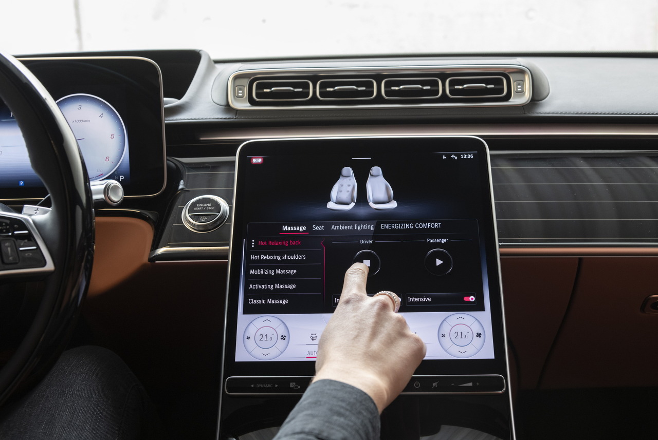 탈착식 쿠션의 푸시 버튼을 통해 안전하고 쉽게 전원을 공급한다. 싱글 액티브 멀티컨투어 시트를 주문할 경우 등받이의 사이드 볼스터와 럼버 서포트 부분의 라인을 탑승자의 체형에 맞게 조정할 수 있으며 마사지 기능도 사용할 수 있다. 뒷좌석 전용 마사지 프로그램은 클래식 마사지, 웨이브 마사지, 등 마사지 등이 준비되어 있다.