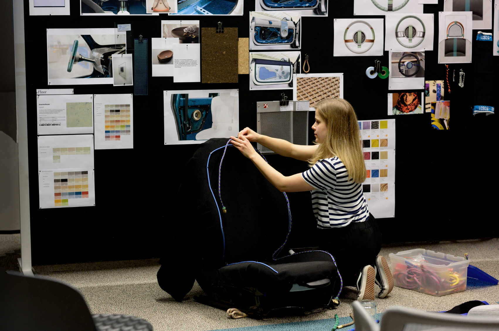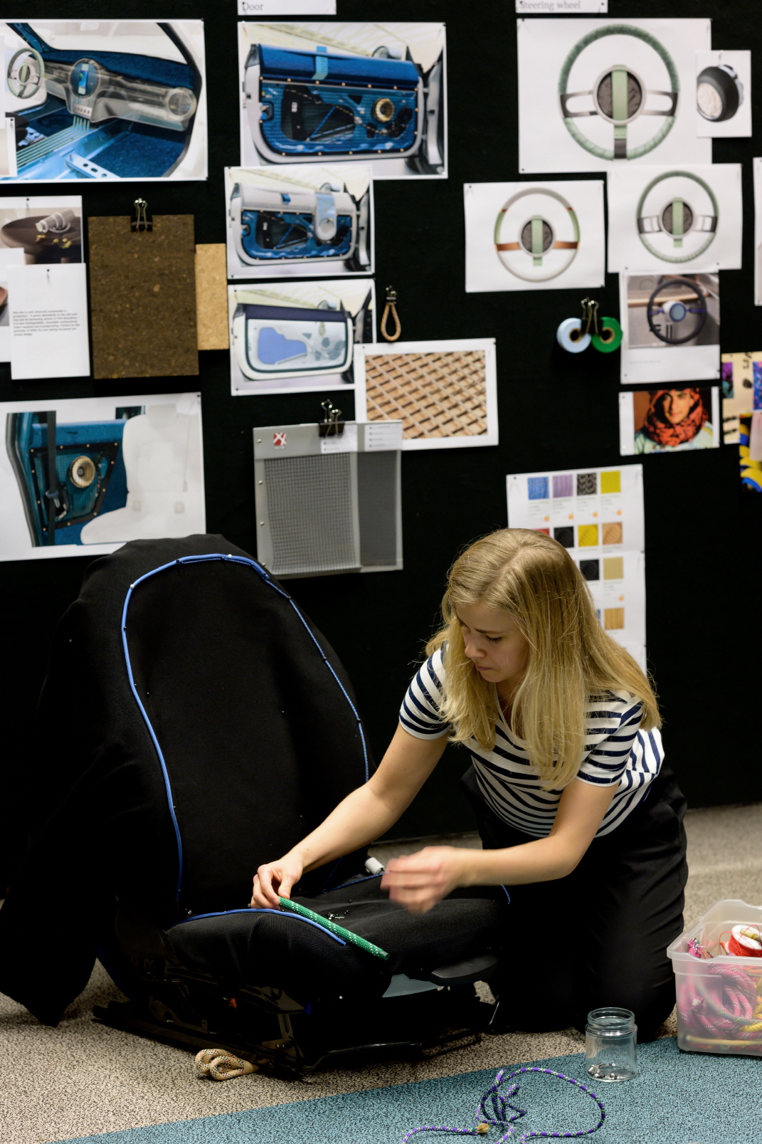 시트 커버를 하나의 소재로 만들고 파이핑을 비롯한 모든 소재를 재활용할 수 있게 만들어 소재의 순환을 가능하게 했다. 플로어 매트는 재활용 고무를 사용해 제작했고, 테라조(terrazzo) 패턴은 재활용과 제조공정의 부산물로 나온 것이며 이 재료의 일부로 소재를 다시 새로운 용도로 사용하게 하는 등 다양한 컬러의 구성 요소들을 긍정적으로 표현해냈다.