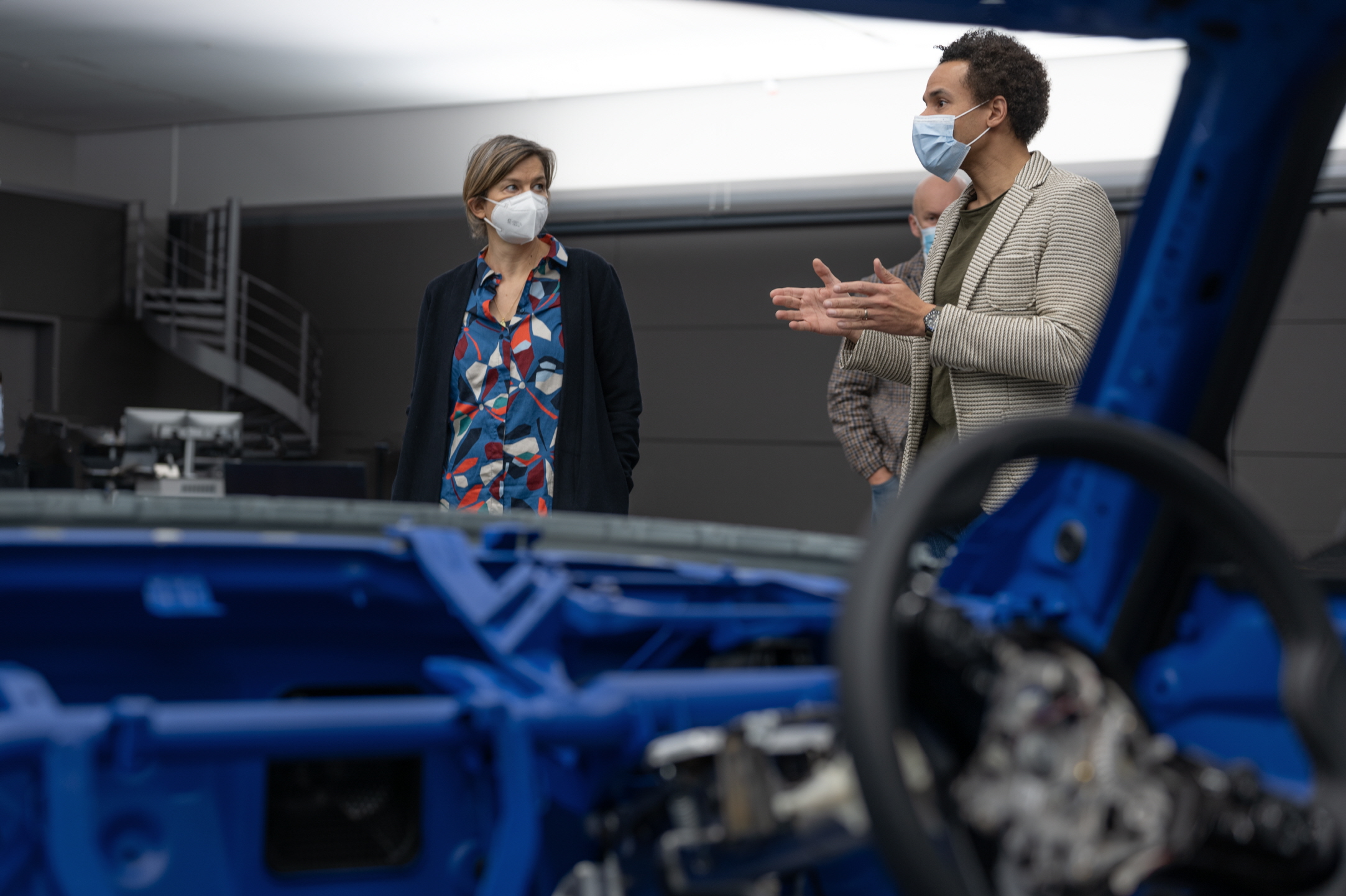 인테리어의 중심이기도 한 스티어링 휠이 가장 필수적인 기능만 남기고 단순화했다. 스티어링 림은 로드 바이크 스타일로 핸들 바 테이프로 감았다. 3개의 알루미늄 스포크가 림과 스티어링 휠 임팩트 업소버를 연결하고, 림의 매시 커버는 에어백의 뒤를 볼 수 있게 만들었다.