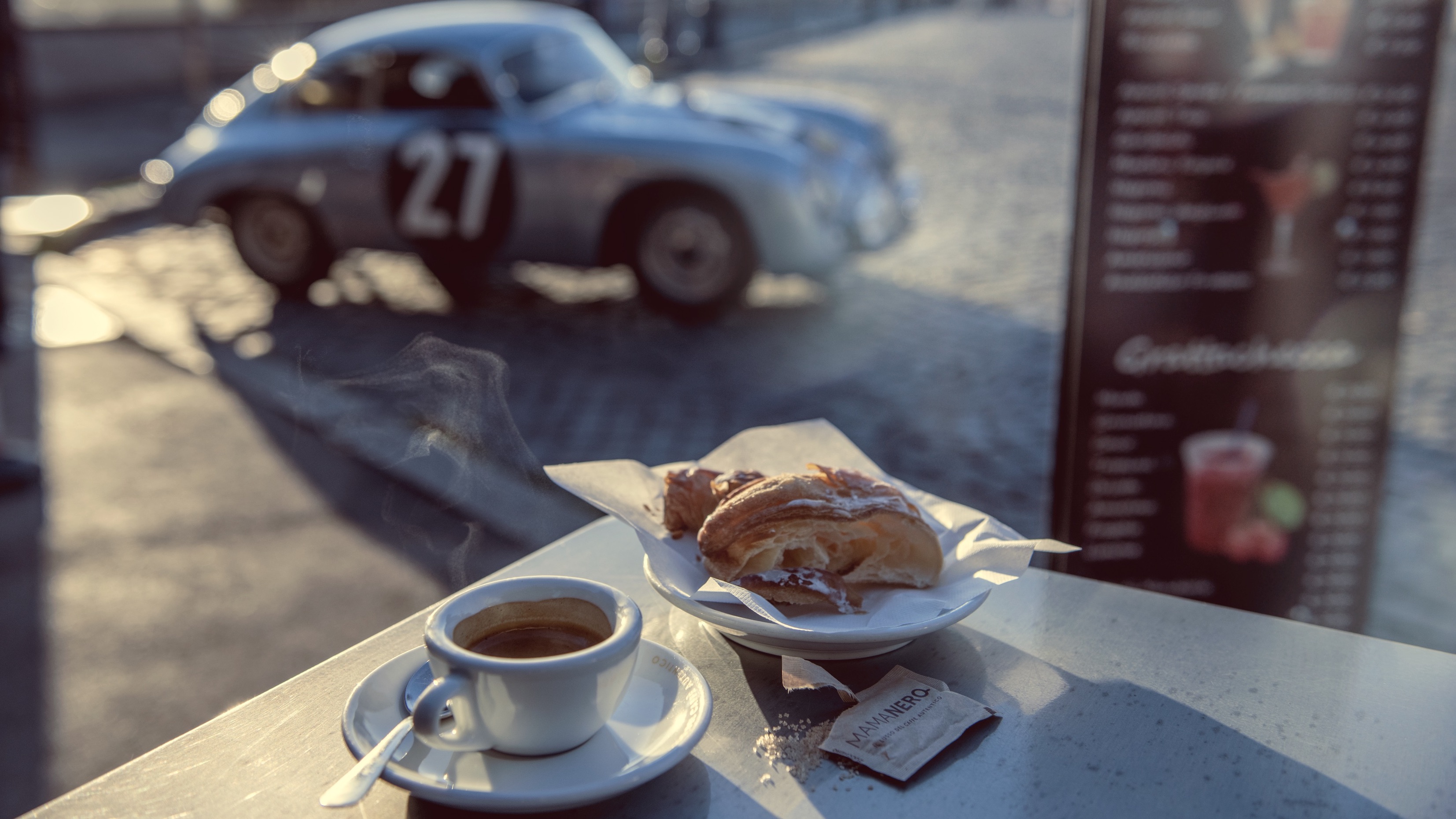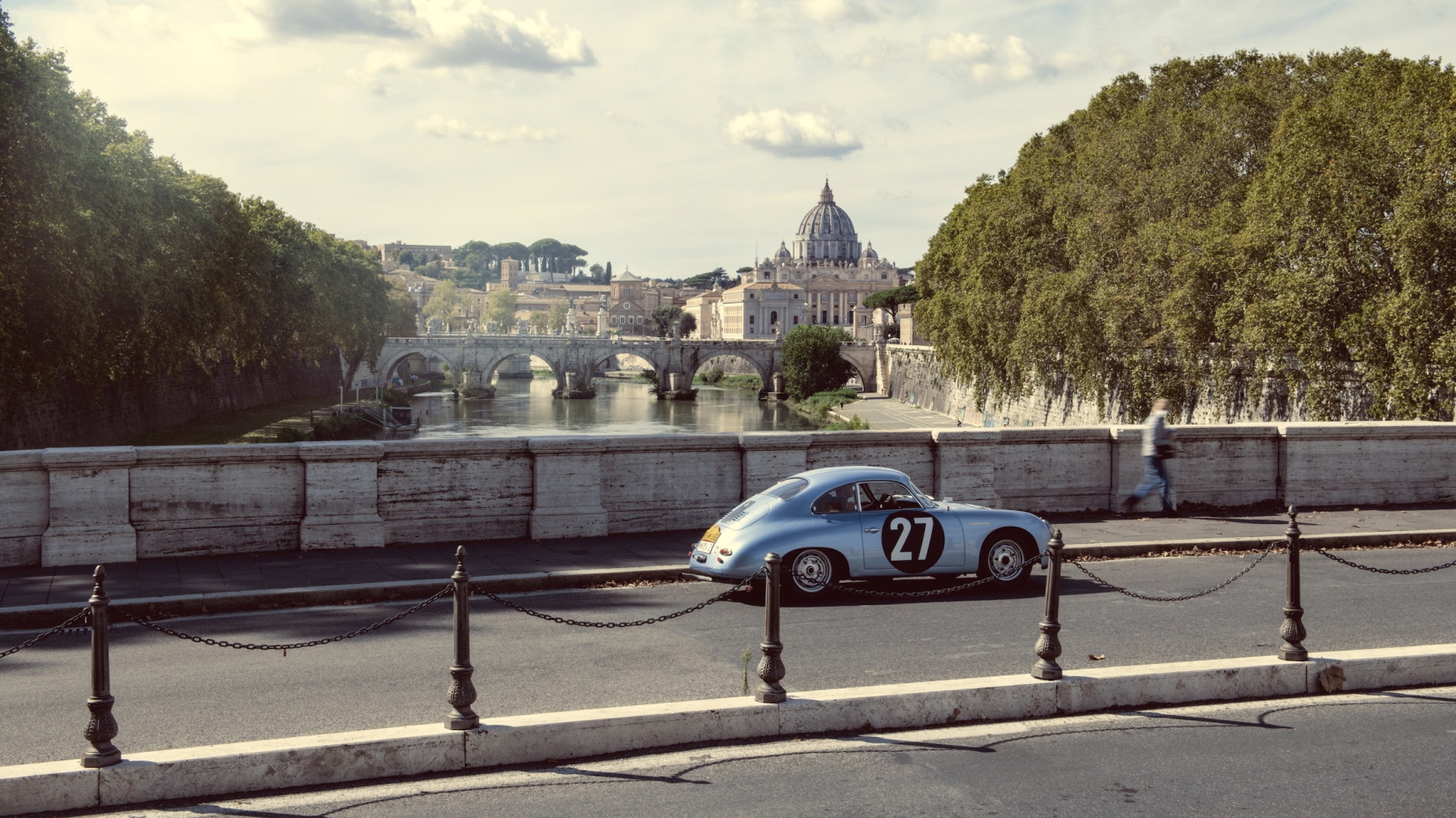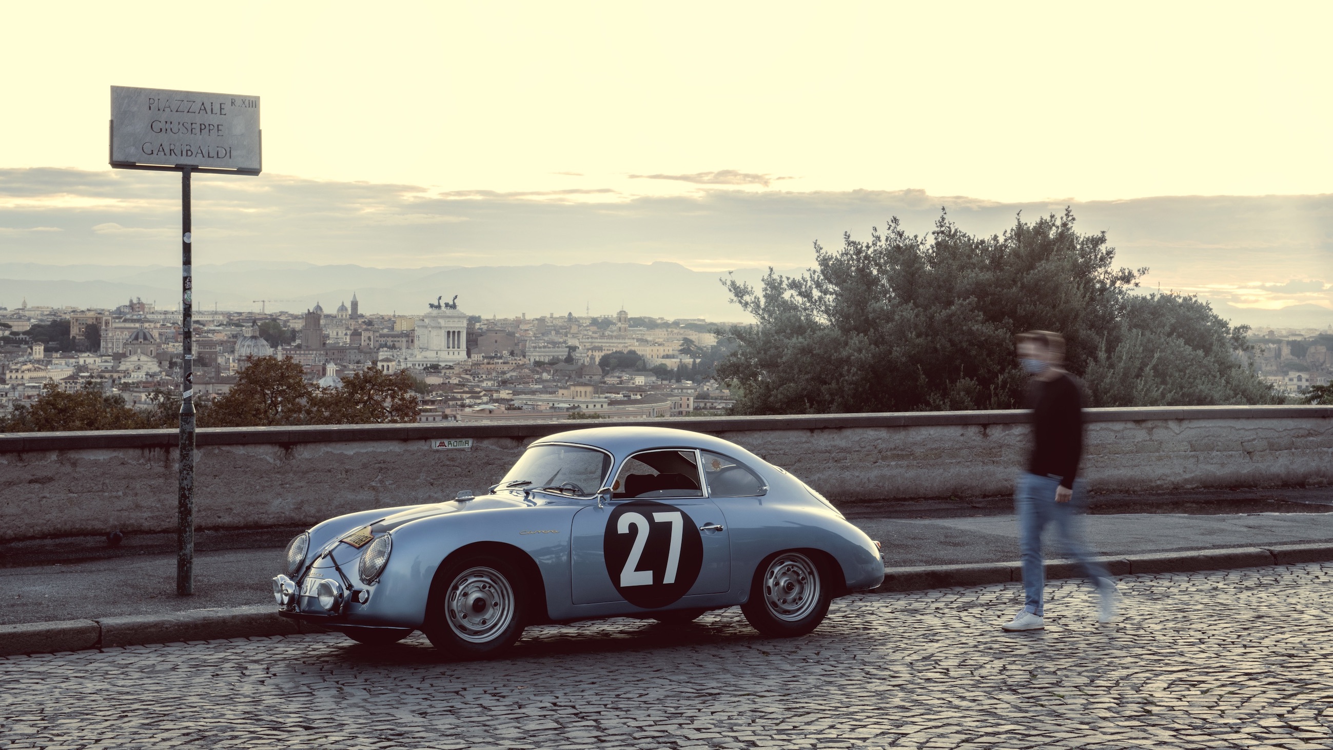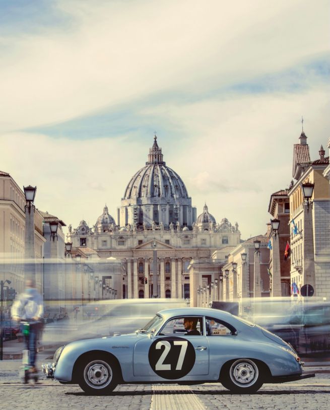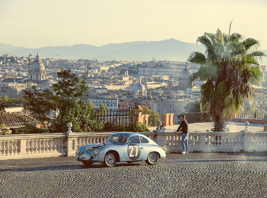피아짤레 주세페 가리발디 마크 리브(Piazzale Giuseppe Garibaldi. Marc Lieb)는 뜨거운 에스프레소 한 잔을 마시며 커피를 음미하고 그 순간을 즐긴다. 그 앞에서 영원한 도시는 빛나는 새벽빛을 온몸으로 받아낸다. 그는 로마에 처음 오지만 혼자가 아니다. 그의 옆에는 이미 주행거리 500,000km를 훌쩍 넘긴 포르쉐 356 A 1600 GS Carrera GT가 아름다운 라인을 마음껏 뽐내고 있다.