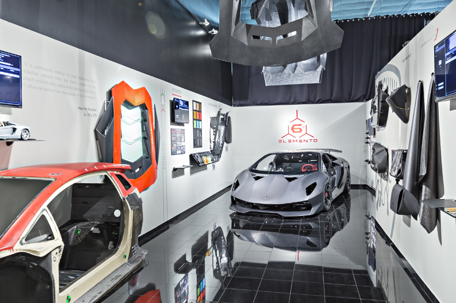 람보르기니는 항공우주산업의 보잉(Boeing)과 골프 클럽 제조사 캘러웨이(Callaway)와의 협업을 통해 단 며칠 만에 세스토 엘레멘토(Sesto Elememnto) 슈퍼카 콘셉트를 만들어 내는 기술인 포지드 콤포지트(Forged Composites®) 기술을 개발해냈다.