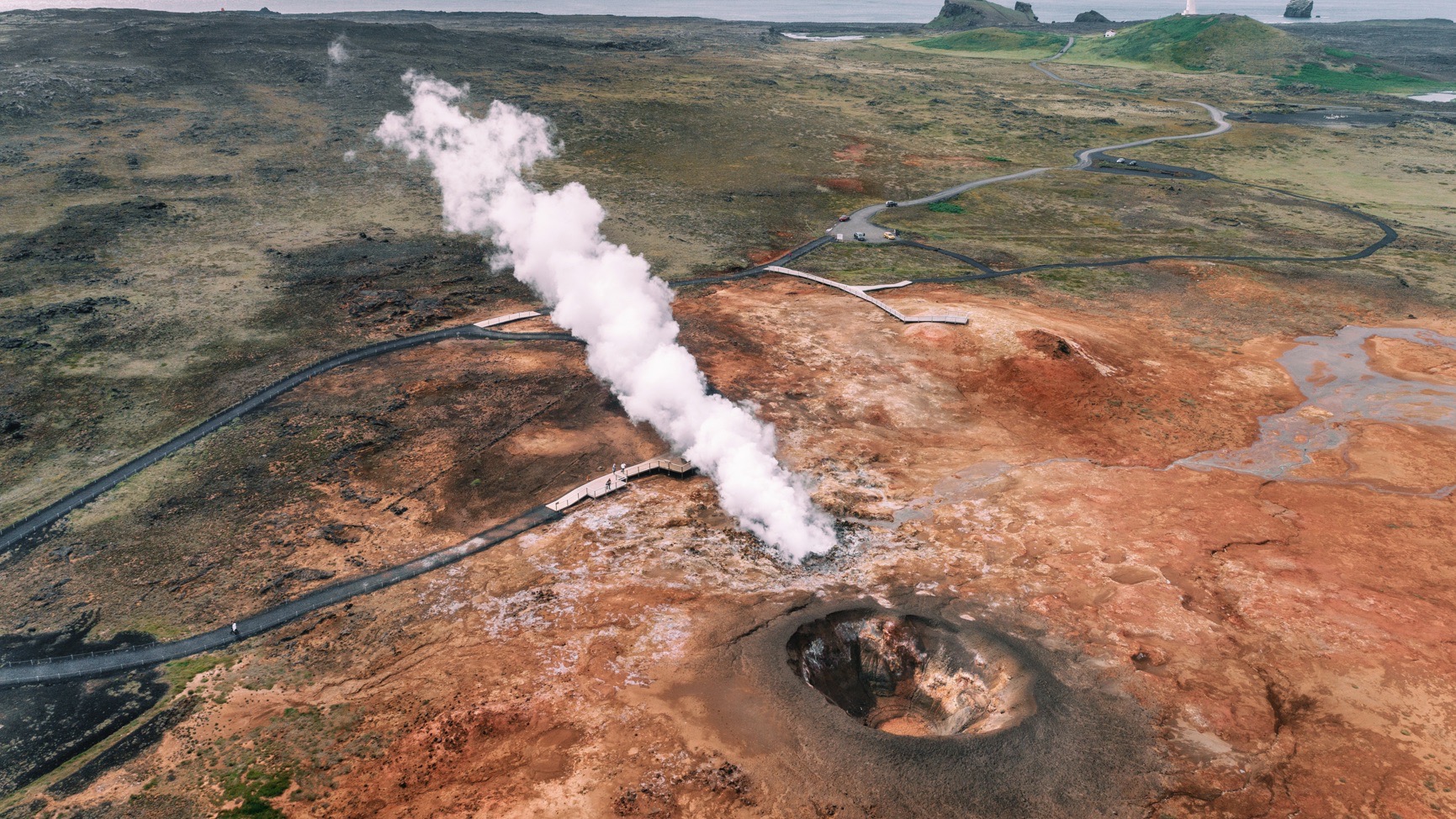 케플라비크(Keflavik)에서 크볼스뵐루르(Hvolsvöllur) 남쪽 해안 길을 따라가는 길은 거리가 180km에 이르고 페투르손은 2시간 정도면 달릴 수 있다고 말하지만 427번 도로를 타기 전 그린다비크(Grindavik) 항구 약 43km 지점에서 커피 타임을 갖는 것을 추천한다. 그가 가고 싶어 하는 또 다른 짧은 우회로는 42번 도로 아래 클레이파르바튼(Kleifarvatn) 호수와 크리스빅(Krýsuvík) 화산의 지열 온천을 지나 레이캬네스 반도(Reykjanesfólkvangur) 자연보호구역으로 이어진다.
